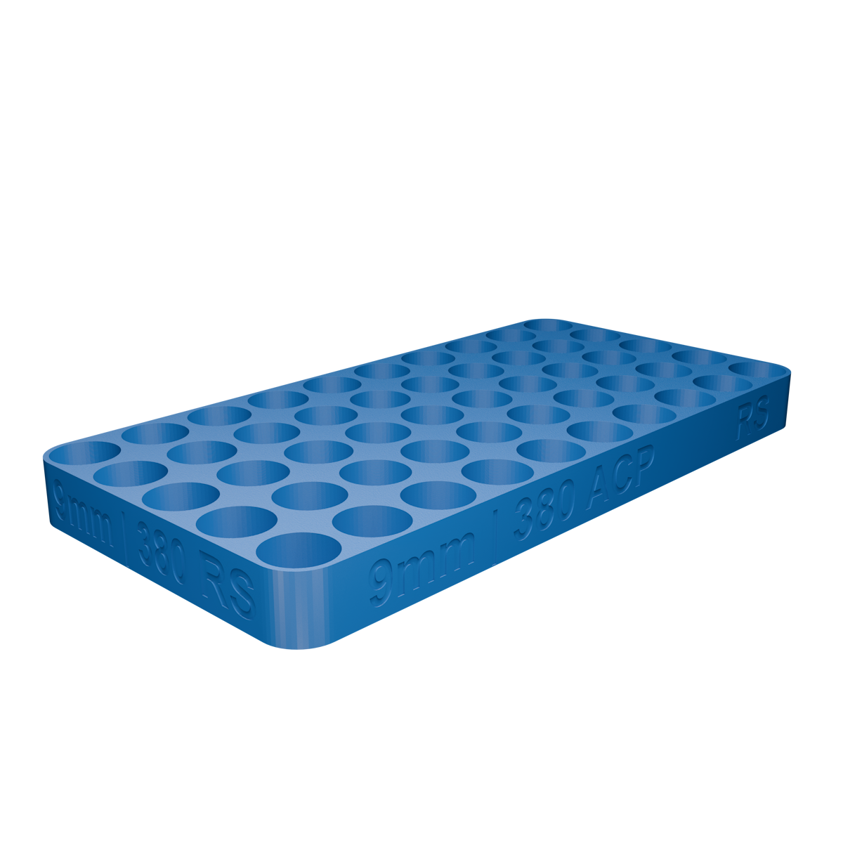 A RecargaShop Flat 50 foi desenvolvida para otimizar espaço na bancada e permitir controle de cada etapa da recarga, mantendo 50 cápsulas alinhadas e estáveis. A gravação do calibre em baixo relevo (na própria peça) + a ampla variedade de cores ajudam a evitar confusões durante o processo.